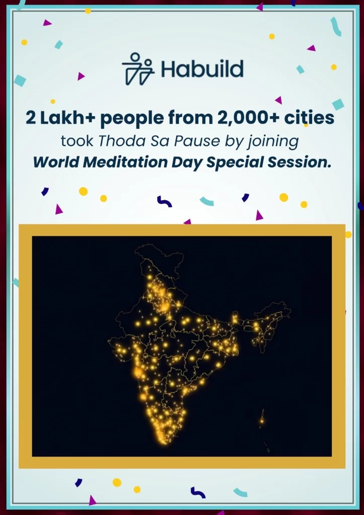 This World Meditation Day, Habuild brought together 2 Lakh+ Indians across 2000+ cities globally for a simple yet powerful collective act taking “thoda sa pause”. As people stepped away from their busy schedules and stress for a few mindful moments, the initiative turned meditation into something gentle, doable and deeply human.