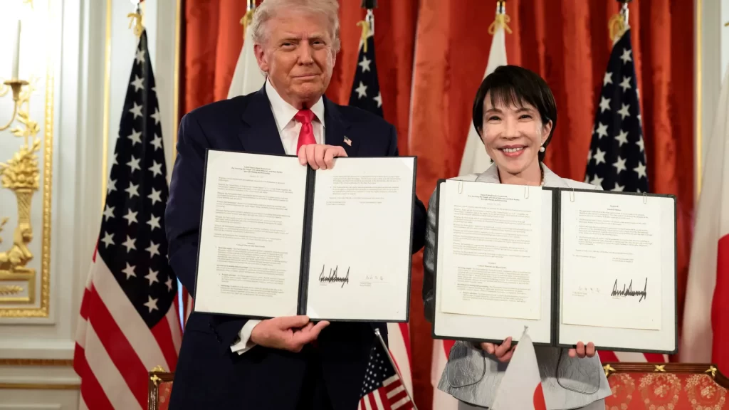 During their meeting at Tokyo’s state guesthouse, the Akasaka Palace, the leaders highlighted that the agreement represents both an economic safeguard and a strategic realignment. Japan also committed to investing approximately USD 550 billion into the U.S. economy across sectors such as power generation, liquefied natural gas, and infrastructure. This move strengthens economic ties while reinforcing the minerals cooperation framework.
